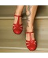 Red Genuine Leather Vintage T-Strap Low Heel Shoes