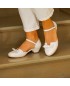 These white genuine leather shoes bring a perfect balance of elegance and comfort with a touch of femininity. Featuring a rounded toe and a delicate bow accent on the vamp, they offer a refined yet charming silhouette. The ankle strap with adjustable buckle secures the fit while adding a graceful finishing touch.
